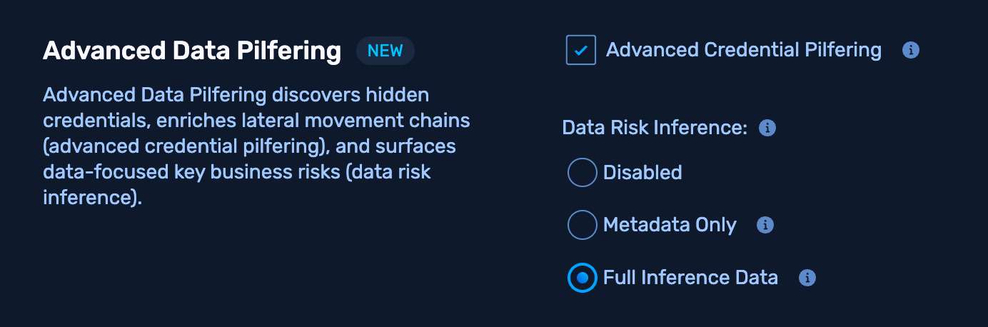 - Step 2: Choose whether to enable Advanced Credential Pilfering, which uses advanced semantic reasoning to detect and extract credentials from various data sources. These credentials are then used to move laterally and escalate privileges during the attack.